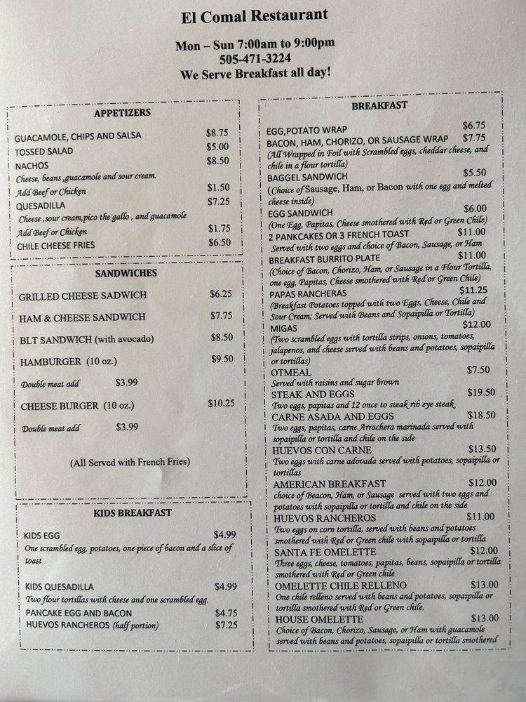El Comal, located in Santa Fe, NM, offers a delightful experience of authentic New Mexican cuisine. With a diverse menu ranging from flavorful appetizers to hearty breakfast dishes, this hidden gem has impressed customers with its delicious food and friendly service. Reviewers have praised the generous portions, affordable prices, and cozy diner atmosphere. The restaurant's specialties like the adobada combo plate and sopapillas have received high praise for their authenticity and taste. The fresh tortillas and extensive menu options add to the charm of this unassuming establishment. Overall, El Comal stands out for its top-quality food, reasonable prices, and welcoming ambiance, making it a must-try for those looking for a true taste of New Mexico.